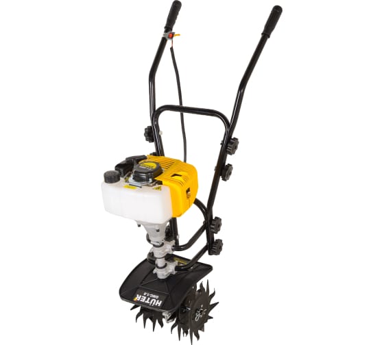 Мотокультиватор Huter GMC-1.8 - легкий 2-тактный агрегат, предназначенный для рыхления клумб, грядок, активного смешивания почвы и вносимого удобрения. Мощность установленного двигателя - 1 л.с. Складная рукоятка облегчает транспортировку и позволяет сэкономить место при хранении. Ширина обработки за один проход составляет 23 см.
