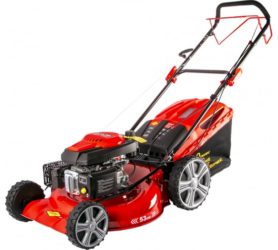Оснащена приводом на задние колеса, поэтому нет необходимости толкать косилку перед собой руками.