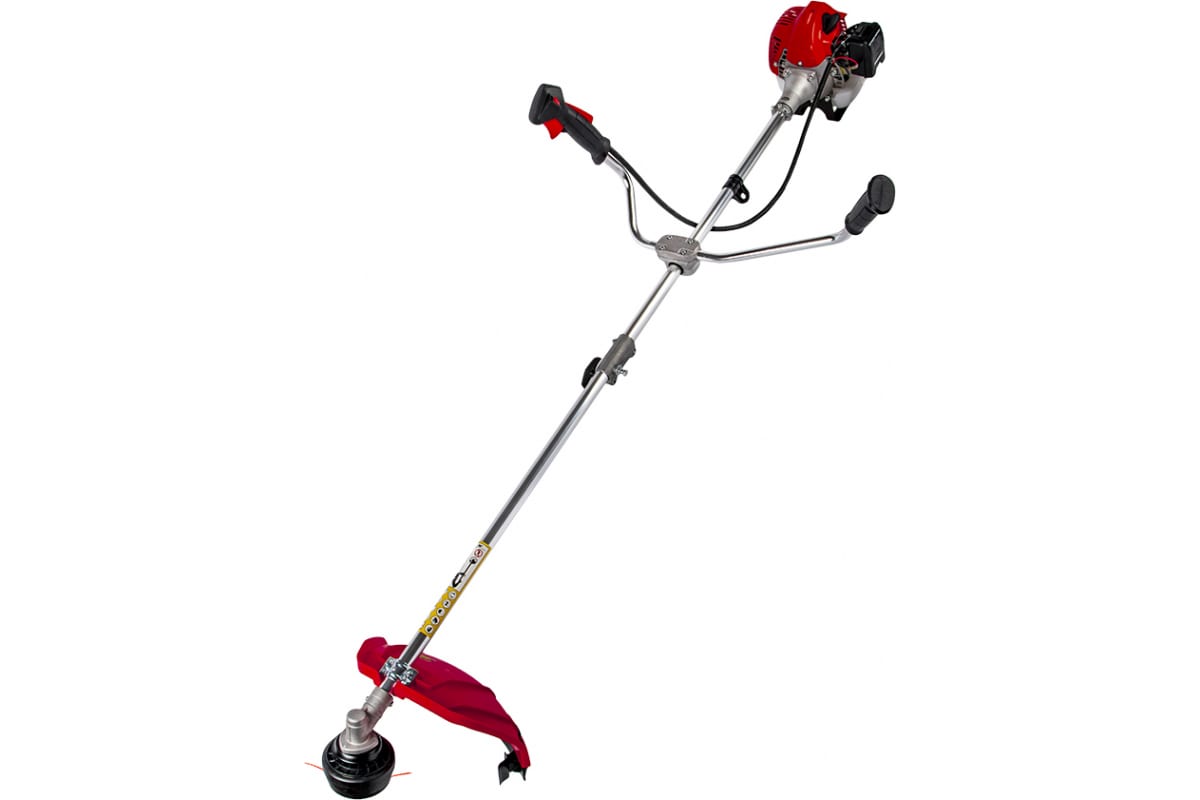 Бензиновый триммер DDE GB26RD имеет прямой вал с редуктором и предназначен для кошения травы, сорняков и кустарников. Велосипедная рукоятка обеспечивает удобное ведение инструмента. Плечевой ремень распределяет нагрузку и делает рабочий процесс менее утомительным. Защитный кожух снабжен отрезным ножом для подрезания лески. Разъёмный вал облегчает хранение косы в межсезонье.