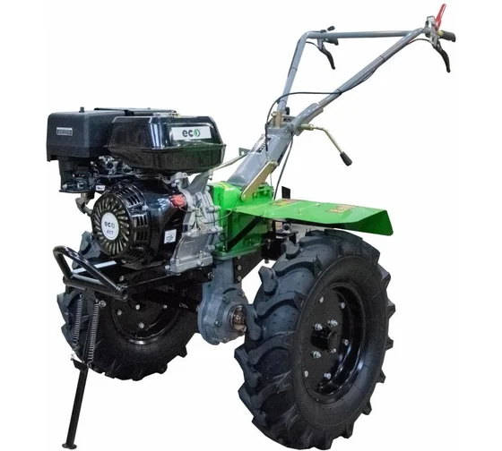 Мотоблок отлично обрабатывает любые типы почвы культиватором, способен справляться с обычными навесным оборудованием. Мощные выходные валы на колеса и фрезы под шестигранник диаметром на 31 миллиметр обеспечивают надежное крепление колес или фрез.